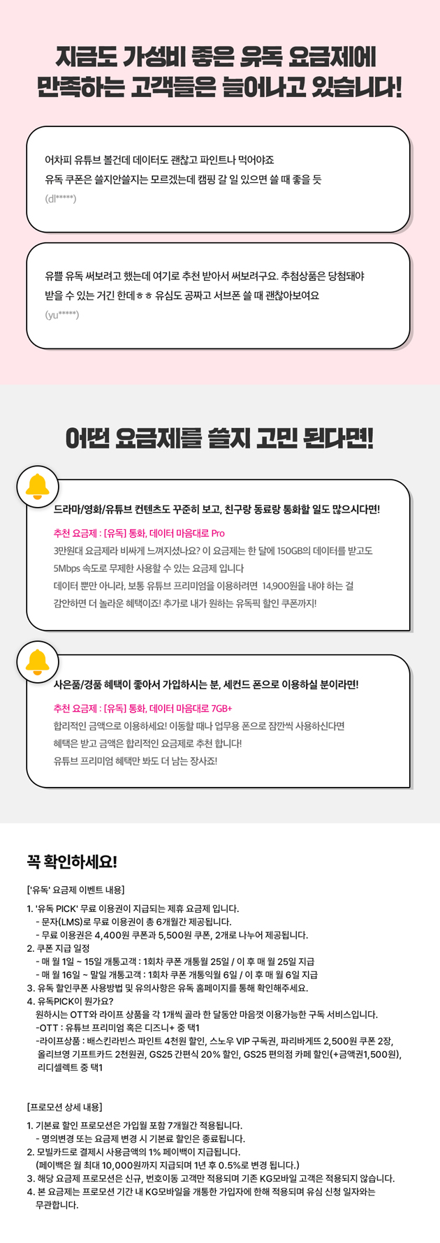 [KG모바일] 유독 PICK 무료 이용권 제공